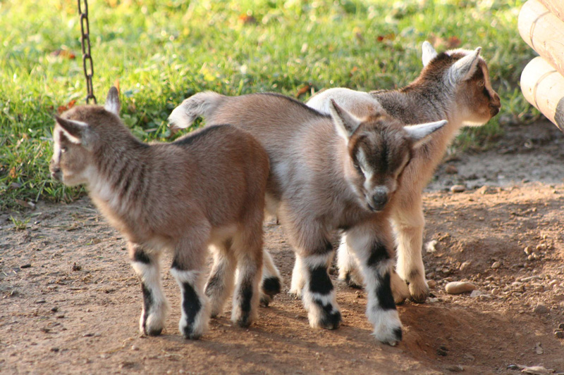 Eine kurze Verschnaufpause des Winters haben Mitte Januar 2011 drei kleine Zicklein genutzt. Sie sind jetzt im Streichelgehege unterwegs. "Es sind außergewöhnlich hübsche Ziegenkinder", findet Tierparkchef Stefan Teuber. Denn sie haben eine tolle braune Färbung, schwarze Füße und zur Krönung auch noch eine weiße Schwanzspitze. "Hier muss unser Ziegenbock alles gegeben haben", schätzt der Tierparkchef ein. Denn die ziemlich durchgehend schwarze Ziegenmutti entspricht nicht so seinem Ziegen-Schönheitsideal.