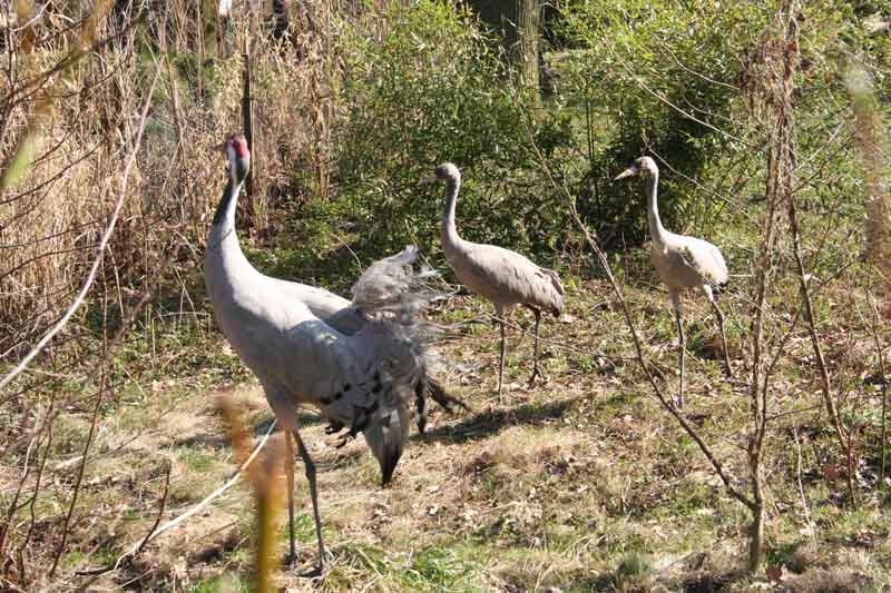 Die Brautschau für Kranich Otto ist abgeschlossen. Im April 2010 zogen zwei ganz junge Kranichweibchen an die Mulde. Ob sie die Stelle von Frieda einnehmen, bleibt abzuwarten. Das Kranichweibchen Frieda war im Herbst 2009 Raubwild zum Opfer gefallen, obwohl es einen heftigen Kampf gegeben haben muss. Doch nur Otto überlebte und zog anschließend vorübergehend in die geschlossene Uhu-Voliere um. Erst mit Inbetriebnahme des Elektrozaunes Anfang 2010 kehrte er in die großzügige Kranichanlage zurück. Ob er hier nun bei einer (oder beiden) Damen sein Liebesglück findet, bleibt abzuwarten.