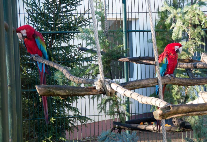 Aufmerksamen Besuchern wird es beim Blick auf die Ara-Voliere aufgefallen sein: Erstmals sind sowohl die beiden dunkelroten als auch die beiden gelben Aras in der Voliere gemeinsam zu sehen, allerdings durch eine Gitterwand getrennt. Stefan Teuber: "Da die vier miteinander nicht klar kamen, es auch zu männlicher Pärchenbildung kam, musste das rote Pärchen, übergangsweise bei den Affen unterkommen." Dort, so die Beobachtung der Tierpfleger, habe das Paar dann keinerlei Affenzirkus veranstaltet. Nun soll die Teilung der großen Voliere helfen. Ob das gut geht, das können die Besucher jetzt auch selbst erkunden. Bei einem Spaziergang im März oder spätestens zum Osterfest, das der Tierparkverein traditionell am Ostersonntag feiert.