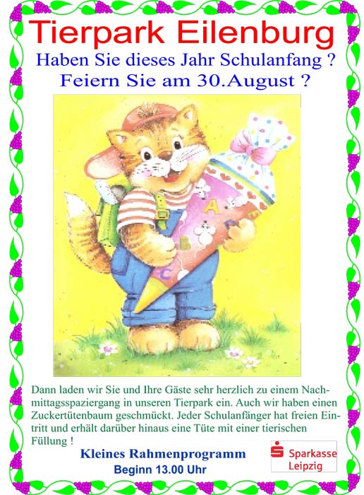 Der Eilenburger Tierpark gratuliert allen Schulanfängern