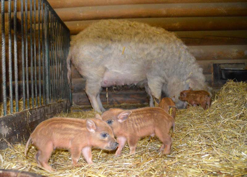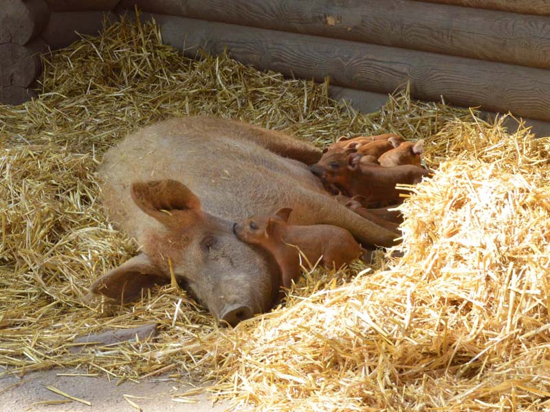 Und gleich noch eine Attraktion hat der Tierpark zu bieten: Die Wollschweindame Brunhild hat 8 Ferkel bekommen, die im Haustierpavillon zu besichtigen sind. Kriemhild und Blondi werden folgen. Wer weiß, vielleicht tummeln sich an diesem Tag noch mehr kleine Schweinchen auf der Anlage.