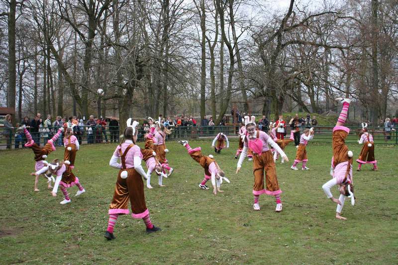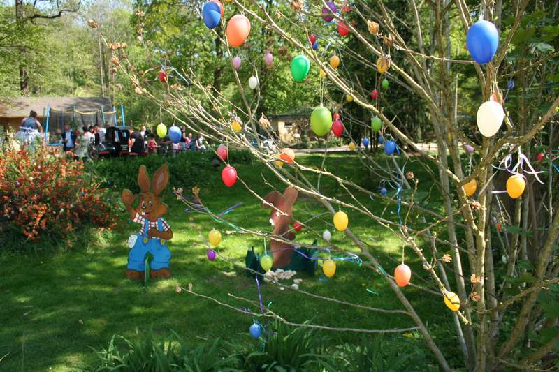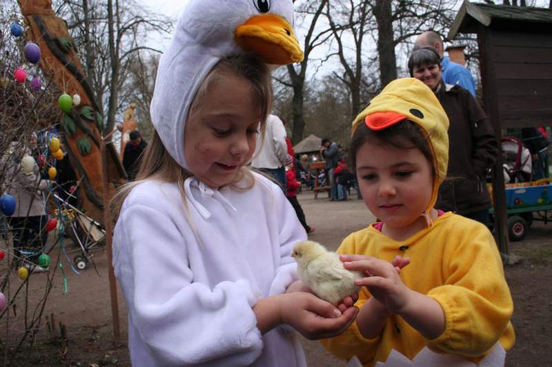 Noch fehlt's am Grün und die Spielwiese wird diesmal wegen der Feuchtigkeit nicht zu nutzen sein, aber unser Osterprogramm findet selbstverständlich am Sonntag wie immer statt. Und die vielen bunten Ostereier bringen Farbe und die nötige Stimmung ins Spiel. Überall sind Hasen zu sehen, ob im Kostüm, als winkender Aufsteller, als luftgefüllter Ballon oder sogar freilaufendes Tier. Ab 10 Uhr läuft das traditionelle Programm, wobei jedes Kind persönlich vom Osterhasen mit einem kleinen Geschenk begrüßt wird. Und dann kann's los gehen mit Parkeisenbahn, Hüpfburg und Glücksrad. Auf der Koppel erleben wir 11 und 15 Uhr den Tanz der Hasen und Küken, dargeboten von den Eilenburger Tanzgruppen. Im Veranstaltungspavillon kann zudem gebastelt werden. Und: Kein Osterfest ohne frisch geschlüpfte Küken! Der Blick in den Brutapparat und das Kükenheim wird wieder im Blockhaus möglich sein. Unsere Wollschweine haben ihre Streicheltaufe längst bestanden und wuseln zwischen den Kindern auf der benachbarten Spielfläche umher. Aber auch andere Tiere sind an diesem Tag zum Streicheln freigegeben. Ein Tierpfleger wird zu den ausgewiesenen Zeiten einige unserer Gehege öffnen. Es versteht sich von selbst, dass die Versorgung der Besucher durch unsere Gaststätte bestens abgesichert ist. Also, auf geht's am Ostersonntag in den Eilenburger Tierpark!