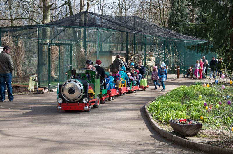 Tierparkeisenbahn vor neuer Wellensittichvoliere.